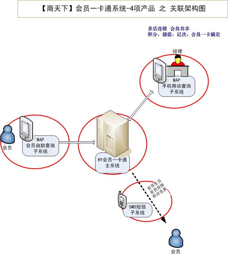 适合分布式多连锁网点的连锁店刷卡消费模式。可实现会员在任一充值网点充值后,可到其他网点刷卡消费,从而无需再支付现金,省去了 带现金的麻烦。整体系统拥有分店管理,会员管理,充值管理,消费管理,短信网址,短信平台等功能,特色有: