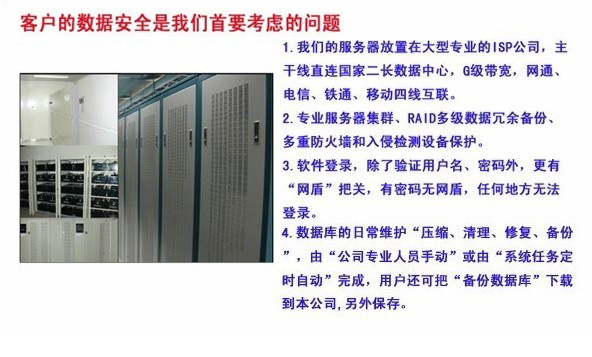 专业级服务器、防火墙、高安全RAID磁盘阵列,长时UPS电源,专业IT人员和专业ISP公司维护,数据自动备份 |
